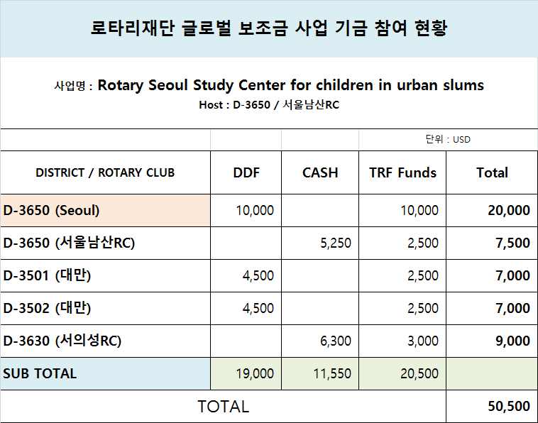 로타리재단 글로벌 보조금 사업, 5만달러 규모로 서울지역 저소득층 아동