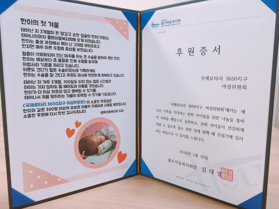 지구 여성위원회 봉사사업으로 홀트아동복지회