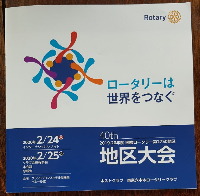 2020년 2월 24~25일, 도쿄 프린스호텔 신타카나와 국제관에서 열린 자매지구 일본 도쿄 RI2750지구는 1980년 258지구로부터 분리되어 창립 40주년을 기념하는 지구대회였습니다.