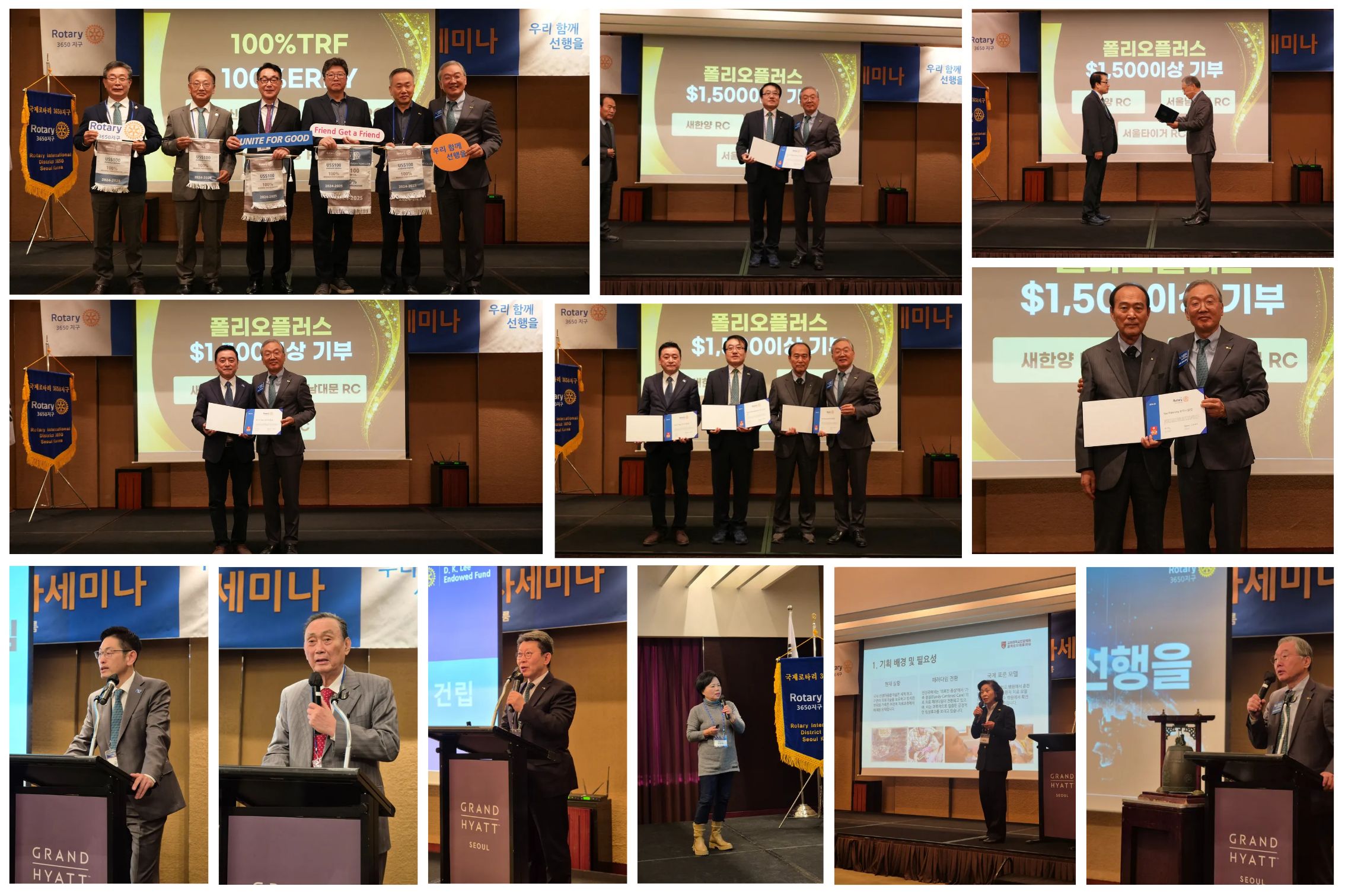 이어 서울 새한양로타리클럽, 서울 남대문로타리클럽, 서울 타이거로타리클럽이 폴리오플러스 1,500달러 이상 기부 클럽으로 표창장을 수여받았다.